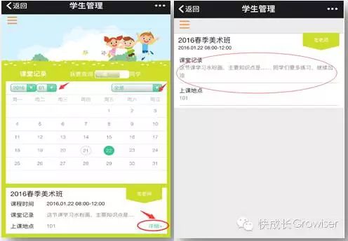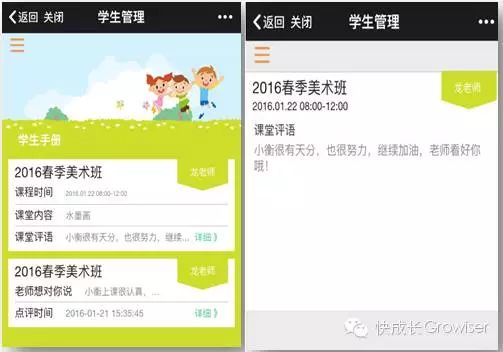 于是,为了给老师和家长们搭建一个更有效的信息反馈平台,快成长的“学生手册”和“课堂记录”功能就华丽登场啦!